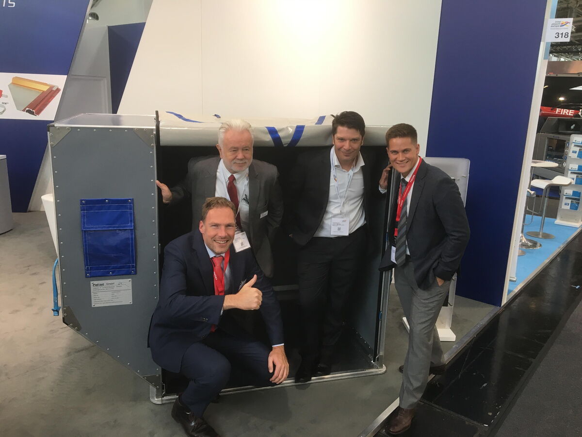 Klaus Demtroeder and Thomas Morawe welcomed you at our booth during the Inter Airport Europe! They are presenting their new light weight AKE containers which contains Twaron of the company Teijin.